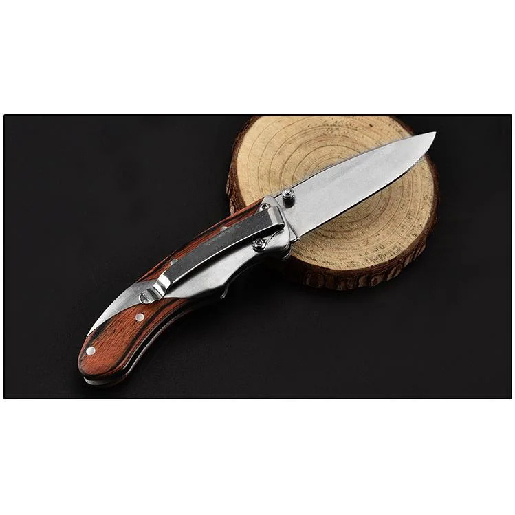 Stainless Blades Iron Wooden Handle Portable Outdoor Survival Knives Foldable Pocket Knife